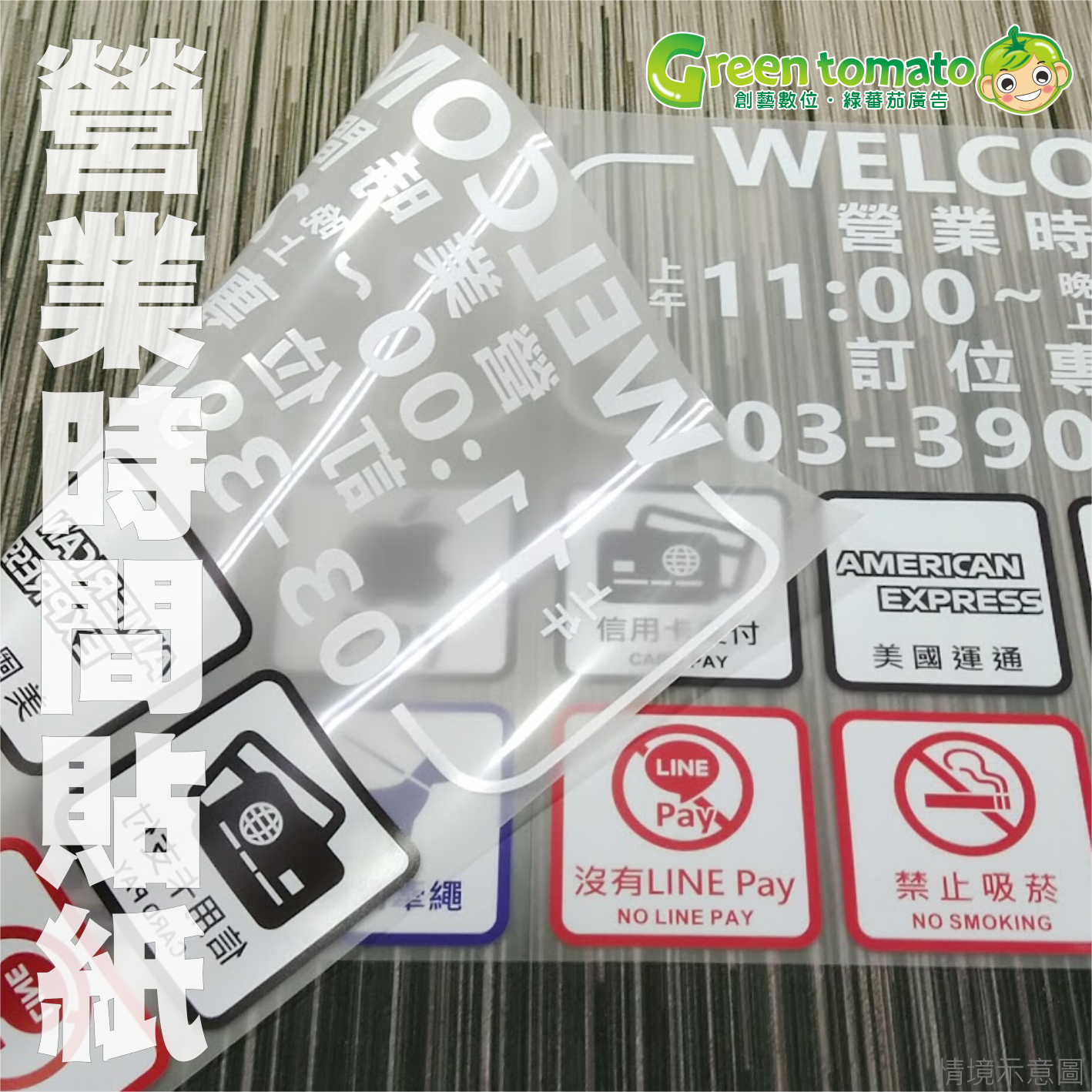 營業時間貼紙.電腦割字.店面貼紙.透明貼紙.營業項目.標示貼紙.玻璃貼紙