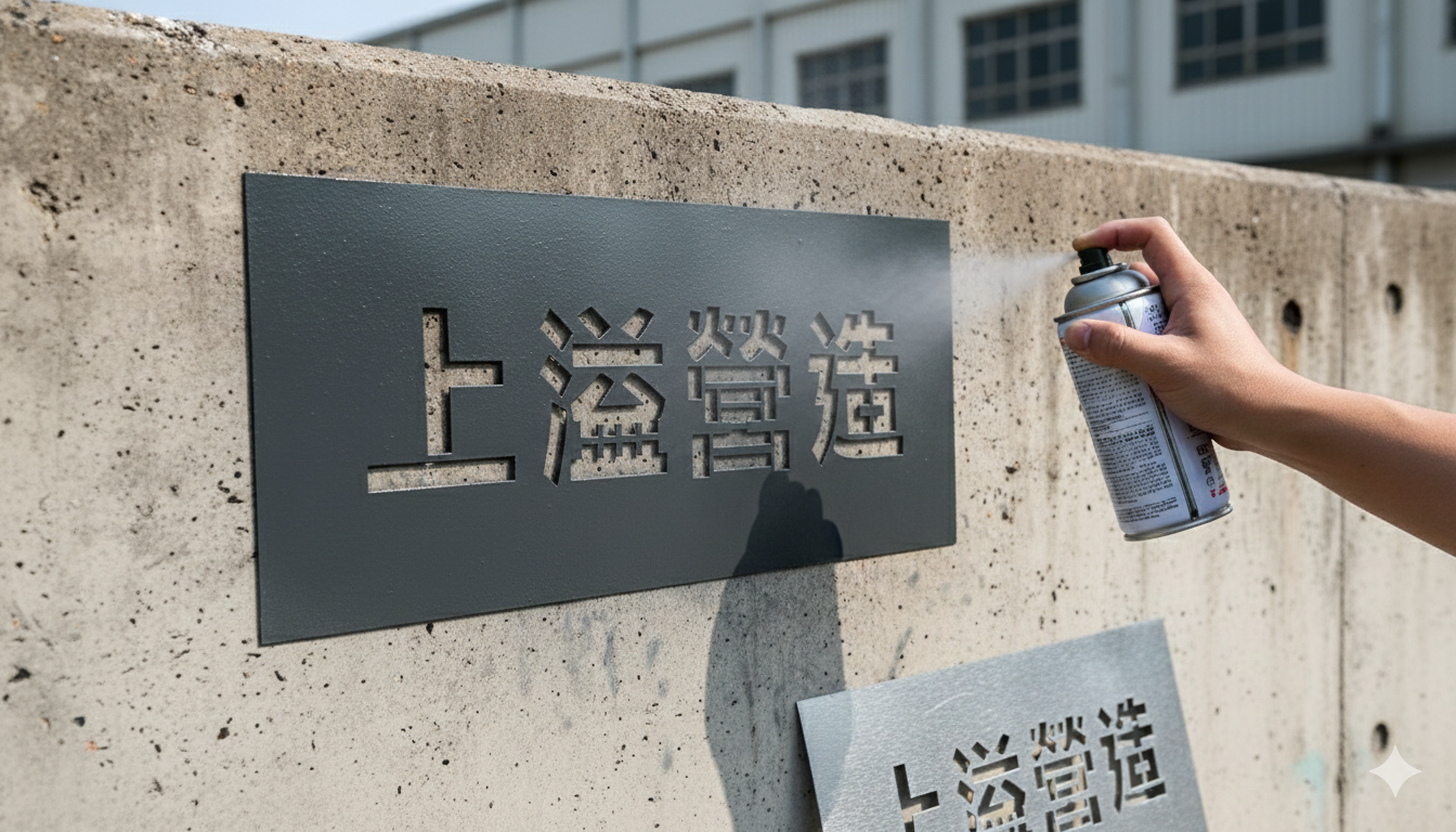 進行噴漆:均勻地噴灑油漆,完成後小心移除字模,呈現專業標誌。