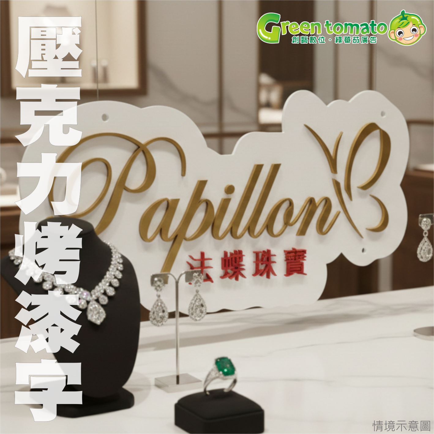 適合各種場合展示,如店面招牌、櫃檯標示、室內裝飾、拍照背板等。