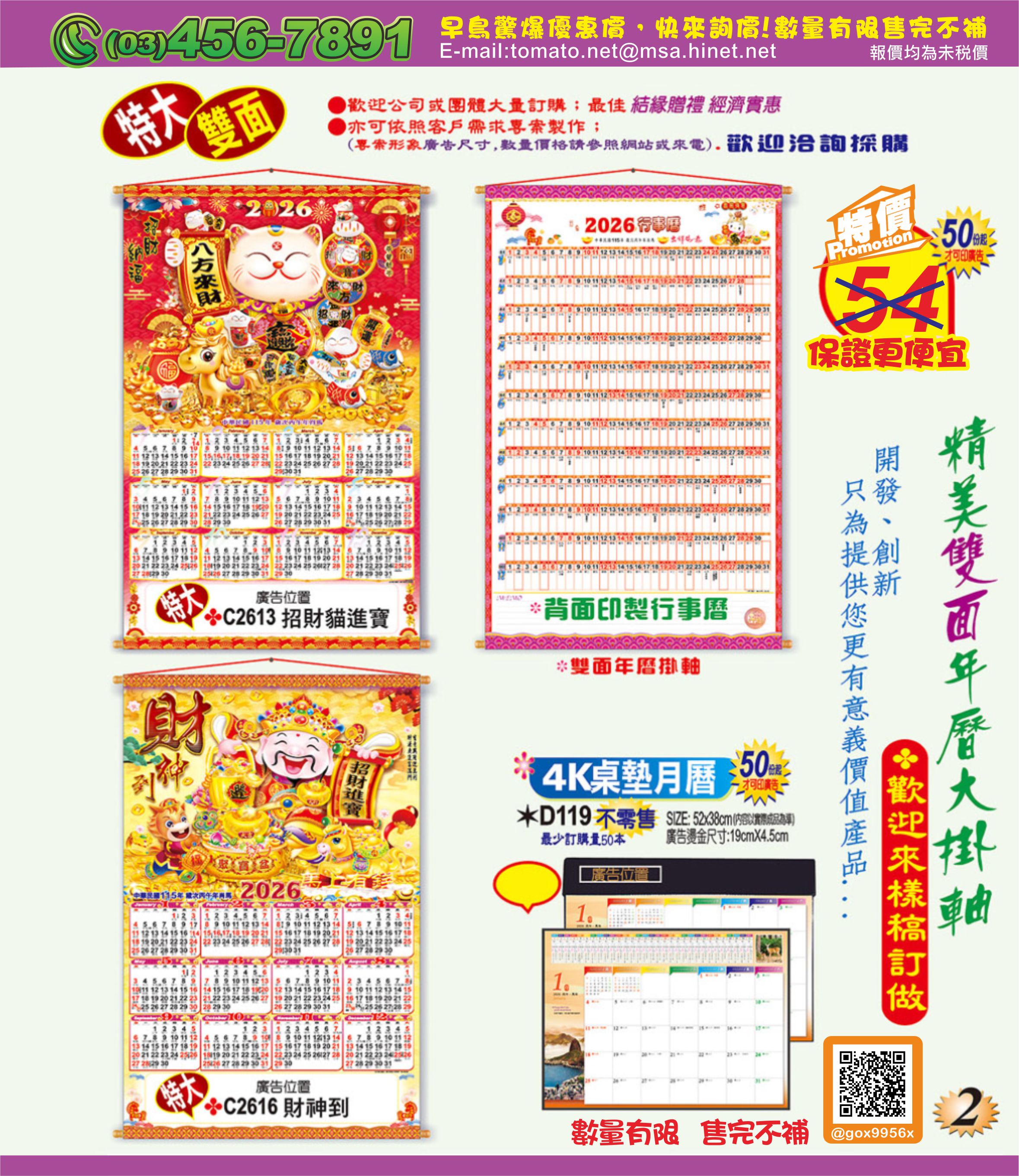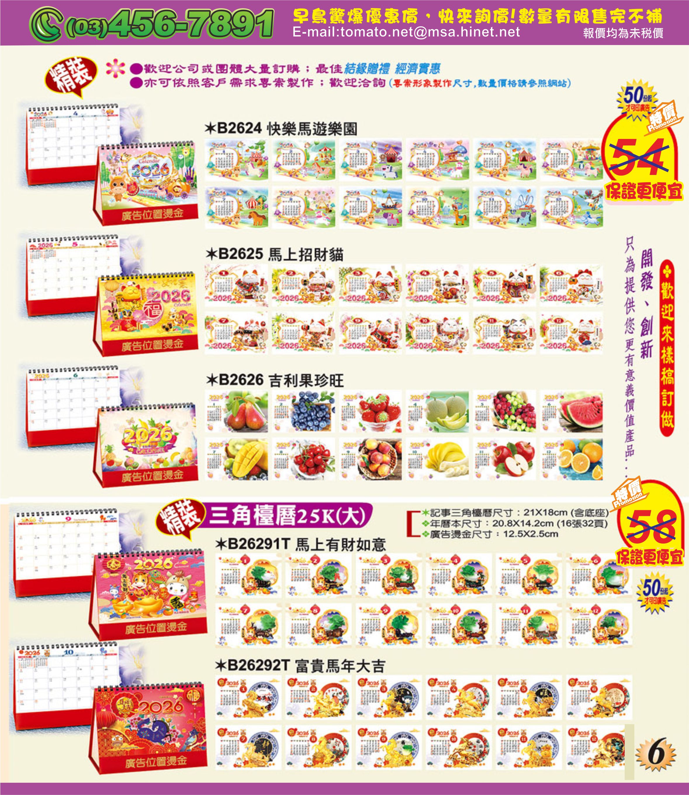 【2026年日曆/月曆/年曆/工商日誌/三角桌曆】
