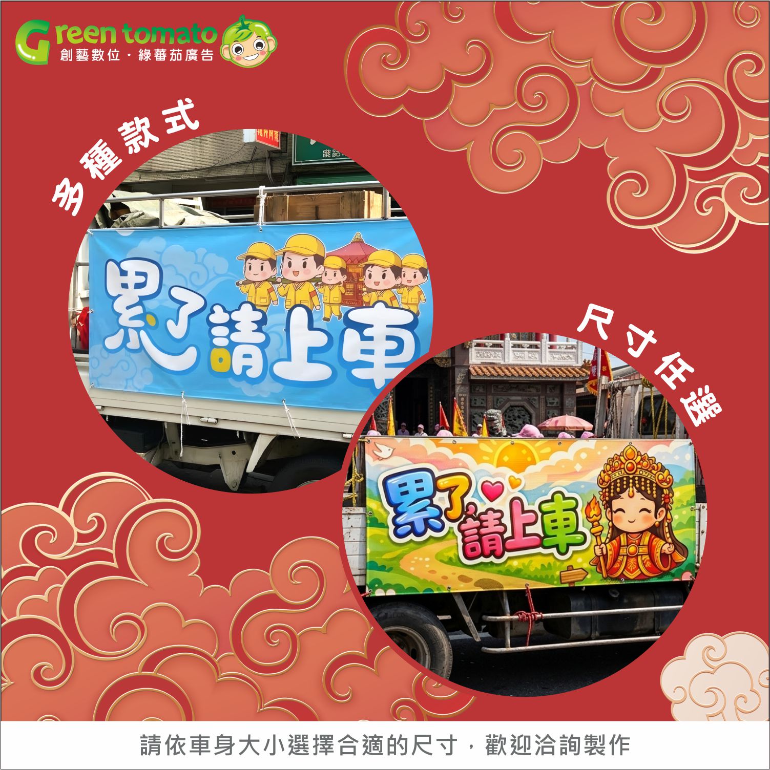 另可依需求客製尺寸與內容(如車隊名稱、用途標示、專屬文字),歡迎直接洽詢。